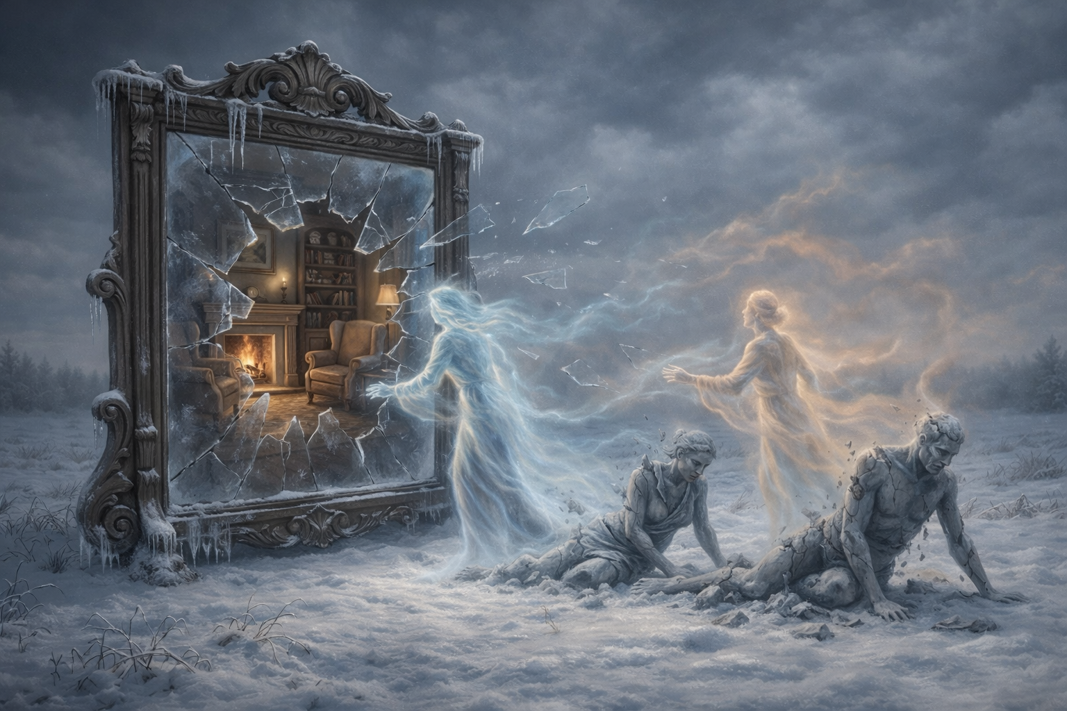 Bedenlere sıkıştırılmış ruhlar, ruhlara kilitlenmiş bedenler. Hasırdan yapma duvarıyla çatısız bir ev. Kış vakti tek rüzgarla yıkılacak, çatısız yuvanın fertleri tedirgin. Toprağın sıcağı, kendini kuru balçıklara bulamış adeta. Envai çeşit tütsünün dahi fayda etmeyeceği; ibrahim ateşi yanılgısına düşüren şefkatli hava, sonu ölüm olan zemherinin son 7 saniyesinden ibaret. Neticede farkedilen hatalar değil, hipnoz halde verilen kararların ve ayna sanılan rüya yanılgısı. Mutluluk sarhoşluğunu bitiren afili ayaza şükürler olsun. Artık herkes özgür.